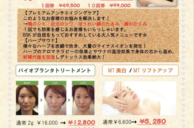 只今BSKではフェイシャルのお得なキャンペーン実施中です。